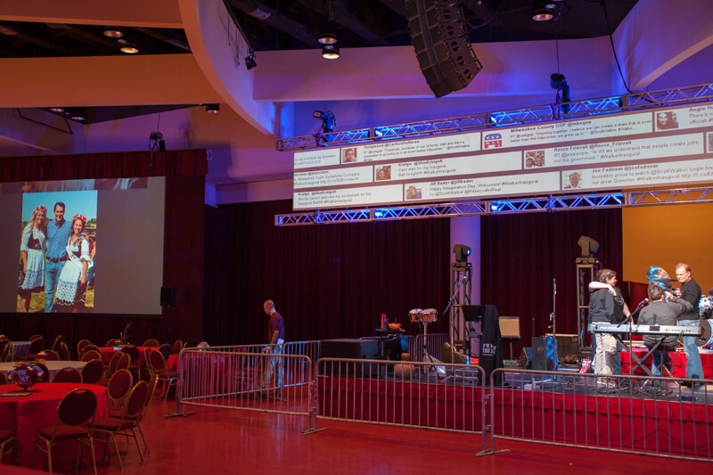 Klingelhoets recalls the recent Governor’s Ball as one such opportunity. “The planners wanted to bring the social media world into the ‘real’ world with a live Twitter feed projected onto 5’ by 50’ custom-sized screens,” he explains. “No off-the-shelf solution met the planner’s very detailed specifications. So we used custom scripts and software, combined with varied hardware and multiple projectors to create the live-crawl effect they were looking for,” he states.